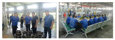 在一分廠,梅漢生董事長一行參觀了商用車輪轂單元裝配線并在現(xiàn)場與榮獲今年全國“工人先鋒號”的班組——一分廠中型外滾道班組代表等一線員工座談,聽取生產(chǎn)制造、質(zhì)量控制、工藝優(yōu)化等方面工作,了解大家思想動態(tài),勉勵大家樹立信心,克難攻堅,充分發(fā)揮先進(jìn)引領(lǐng)作用,完成各項生產(chǎn)任務(wù)。