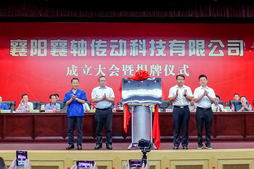 襄陽市政府黨組成員張方晶同志、襄城區(qū)區(qū)委書記周俊明同志、襄陽汽車軸承股份有限公司董事長高少兵同志、漢江資本執(zhí)行董事杜宇同志共同為傳動(dòng)科技公司揭牌
